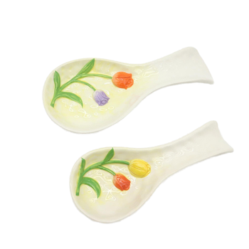 Piatto di burro in ceramica a forma di tulipano all'ingrosso con ornamento da cucina piatto di ceramica